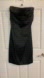 Size: 8, Strapless with a back zipper closure, gathered to help keep up at top, empire waist design, beautiful black acetate nylon spandex mix.