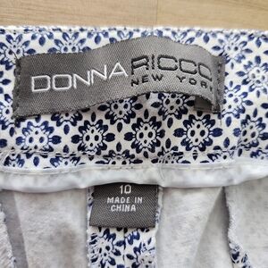 Donna Ricco NY Blue White Print Flat Front Lightweight Pants Size 10