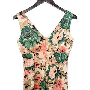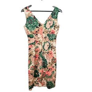 Donna Ricco NY Green And Pink Floral Sheath Mini V Neck Sleeveless Dress Size 4