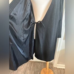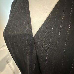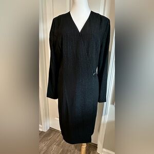 Donna Ricco New York Black Silver Pinstripe Crepe Wrap Dress Women’s 12 NWT
