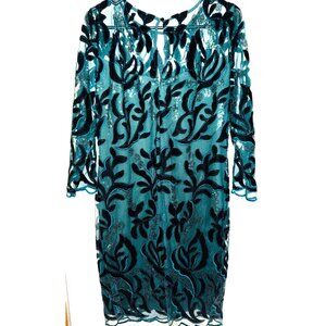Donna Ricco New York Womens Size 12 Green Velvet Floral Lace Dress
