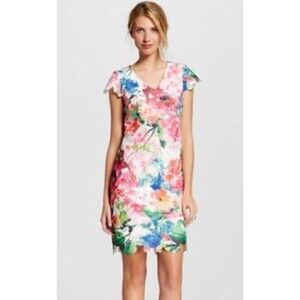 Donna Ricco Pink Multi Floral Dress Sz 4 Side Zipper Cut Out Sheath Women Whimsy