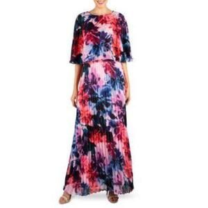 Donna Ricco Pleated Maxi Dress Popover S BLUE Mutli 6