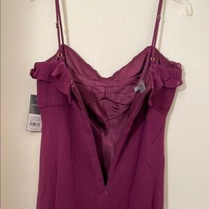 Donna Ricco ruffle dress. Purple (tag says concord). Size 8. Back zipper. 100% silk / lining 100% polyester. Adjustable spaghetti straps. Baby doll style. New with tags. 41 inches top of strap to bottom of dress. 35 inches top of dress to bottom of dress. New with tags.