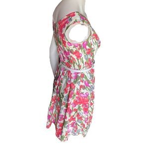 Donna Ricco Short A-Line Dress Sleeveless Vintage Pink Floral Belted Womens 2