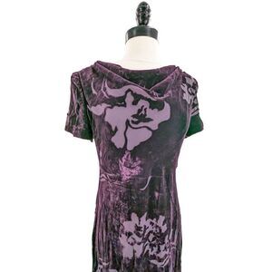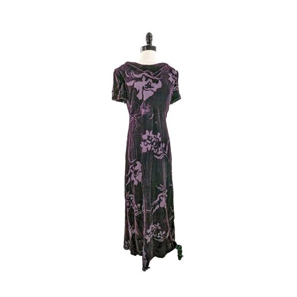Donna Ricco Women Floral Pattern Cowl Short Sleeve Neck Maxi Dress Velvet