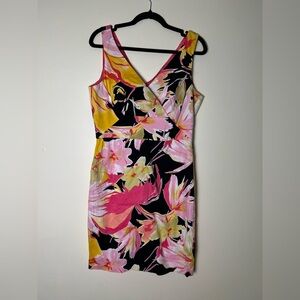 Donna Ricco Womens Euro Summer Dress 10 Floral V-Neck Midi Pink Preppy Chic Glam