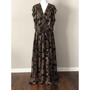 Donna Ricco Women's Size 16 Metallic Flutter Sleeve Maxi Dress NEW