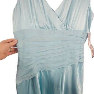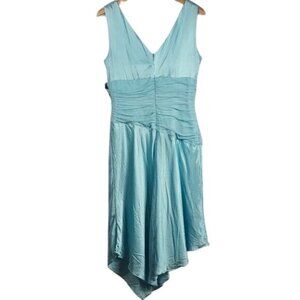 Donna Ricco 100% Silk Asymmetrical Hem Dress Aqua V-Neck Sleeveless Womens 10