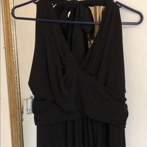 Beautiful halter gown by Donna Ricco. Worn out once and once for a photo shoot. No snags, tears or broken fasteners. Dress has been stored and will need cleaning. Size 20 women’s with tie neck and zipper at waist. Dress is approximately 60 inches from neck to hem. Since it’s tied at neck, it will depend on how tight or loose you tie. 20 in lay flat at waist and dress is loose and flowing as it skims the hips. Clearing out the last of my plus size items left in my closet.