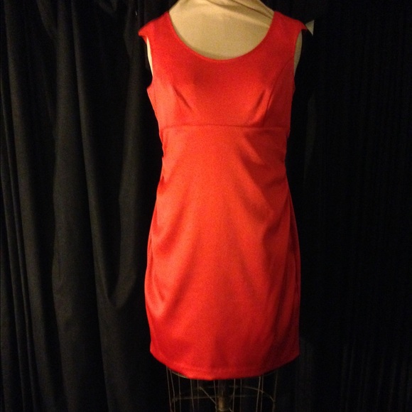 This is a fun little party dress in lipstick red stretch satin with a cute banded peek-a-boo back. Gently worn twice and in perfect condition.