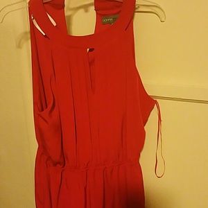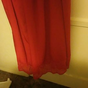 Size 16 red dress with perforated design in bottom, high neck with peep hole, pleated top, gathered waist. New without tags.