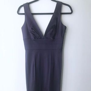 Beautiful purple midi length, stretch v cut plunge dress with open lace up tie in back. Gorgeous fit with flattering pleated bodice. Model wearing same dress in teal. Size 4