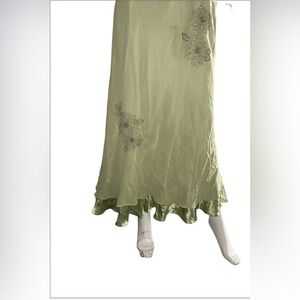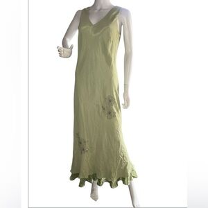 Donna Ricco 100% Silk Donna Ricco Green Maxi Dress with Floral Embroidery sz 10