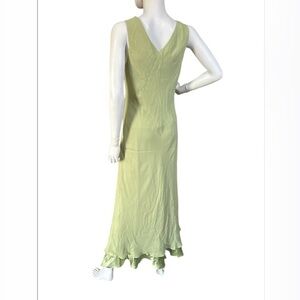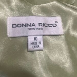 Donna Ricco silk dress in a light green color, featuring a V-neck and sleeveless design.