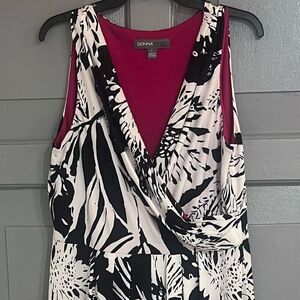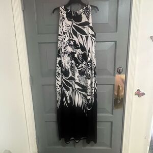 Donna Ricco New York Black & White Palm Sleeveless Maxi Dress Resort Vacation Sz
