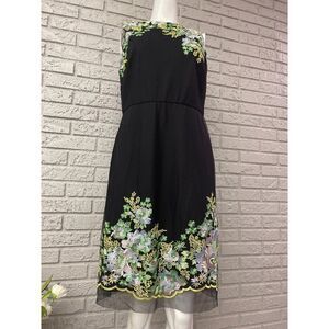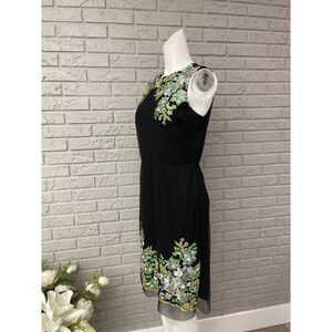 Donna Ricco Women Black Floral Embroidered Mesh Sheath Dress Size 10