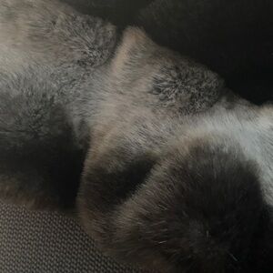 Elegant faux fur scarf by Donna Salyers Fabulous Furs. Features a soft black and gray design.