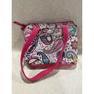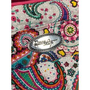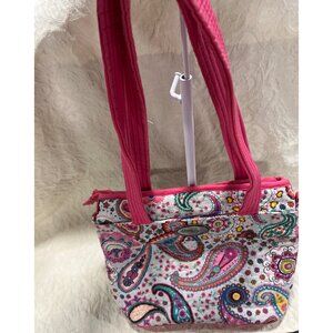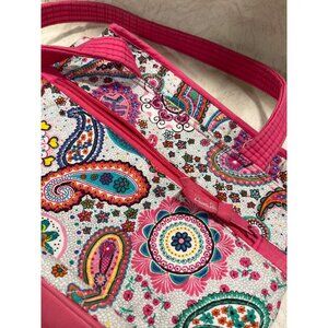 Donna Sharp Quilted Flowery Paisley Tote Bag With Zipper & Pink Handles
