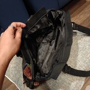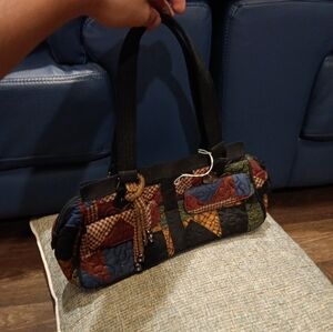 Donna Sharp Quilted Shoulder Handbag Purse Blue Brown Tassel Charm Trim