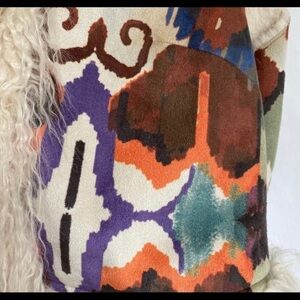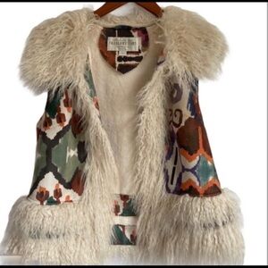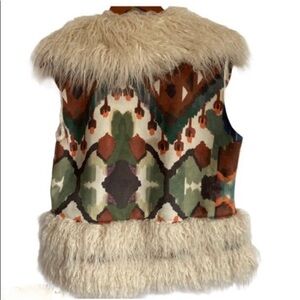 Donna Salyers’ Fabulous Furs Ivory Faux Fur-Lined Aztec Print Faux Suede Vest