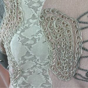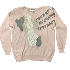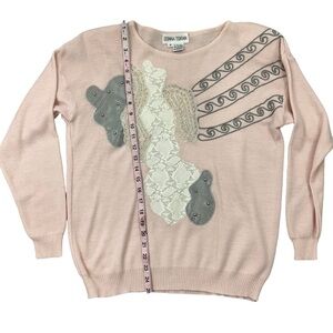 Donna Toran Vintage Lambs Wool Blend 3D Pink Patchwork Granny Sweater SZ Small