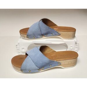 Donna Toscana Women's Baby Blue Suede Wooden Clogs Sandal Casual Shoes Size 9.5.