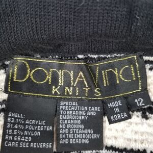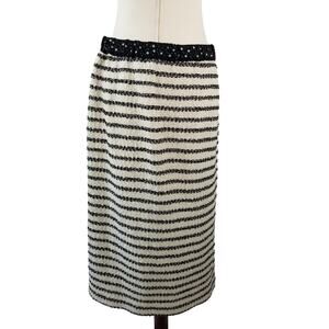 Donna Vinci Knits Black Cream Gold Thread Textured Striped Vintage Skirt Size 12