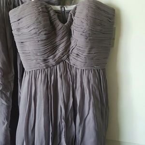 100 % authentic designer Donna Morgan dress in color grey ridge. Strapless sweet heart neckline with flirty, soft delicate a-line skirt. chiffon silk. REALLY A GORGEOUS LAVENDAR GREY TONE. PLEASE GOOGLE FOR MORE COLOR IMAGES. New with tags. Absolutely gorgeous and whimsical. Perfect for your bridesmaids this season or to wear for the next 2 seasons for special events! Comes in in size 2. I have 2. Discount if puchase both. Price listed is for 1 item. A little wrinkled from storage. No returns