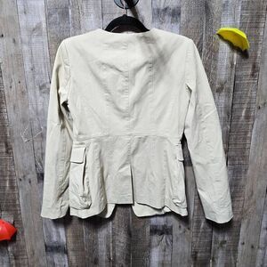 Details: half zip with snap button closure, long sleeve, round neck, front pockets, has shoulder pads, relaxed fit