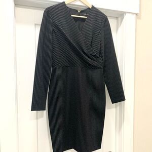 New with tags.This Donna Karan Collection Black stripes Wrap Dress. stretchy fabric . Size: 4