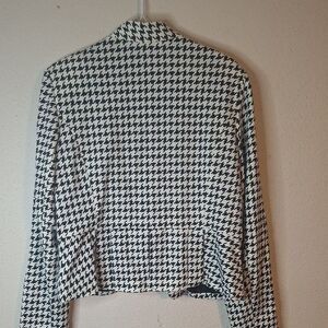 This elegant blazer from Donna Moore features a striking black and white houndstooth pattern, perfect for adding a touch of sophistication to your wardrobe. The tailored fit and open front design make it ideal for both business and smart casual occasions. Crafted from a high-quality woven fabric, this blazer ensures a polished and refined look.
