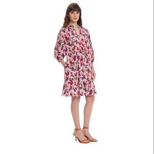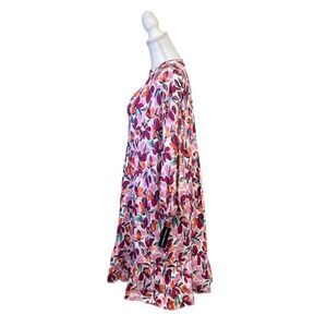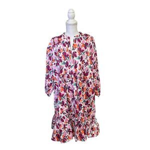 Cassie is the perfect spring frock. We love her sweet v-neck and puffed sleeves in an all-over orange and pink floral print!