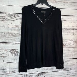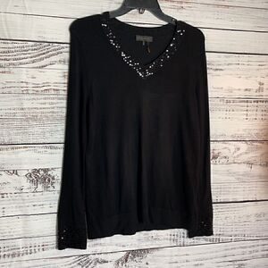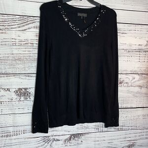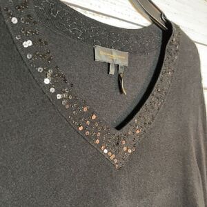 Donna karan sweater Womens size Small V neck sequin Black knit light pullover