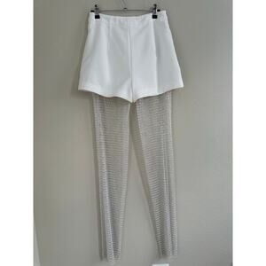 Donnée par Dieu 'SCANDELOUS' rhinestone pants overlay shorts in white