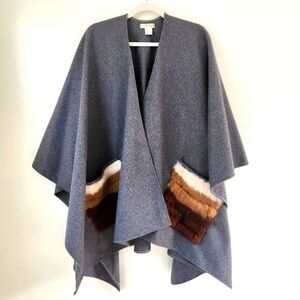 Donni Charm Poncho Wool and Rabbit Fur Cape
