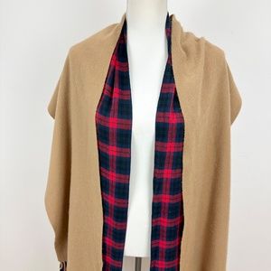 Donni Charm Wool Flannel Double Layer Wrap Scarf Tan Red Made in USA One Size.