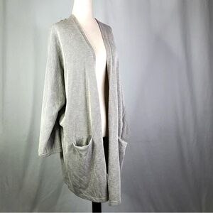 Donni open front long lightweight jersey sweater engineer stripe pockets OS