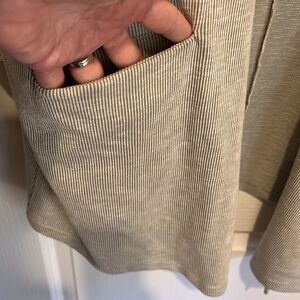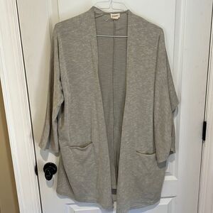 Excellent condition. Worn once. Beautiful cardigan. Materials 55% Cotton, 41% Polyester, 4% Spandex, 3/4 Sleeve, color Gray