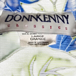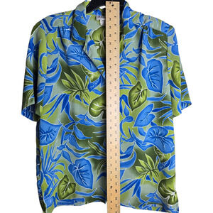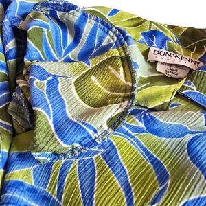 Donnkenny Classics Shirt Women Large Blue Green Hawaiian Camp Button Front