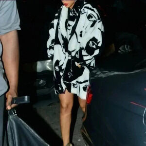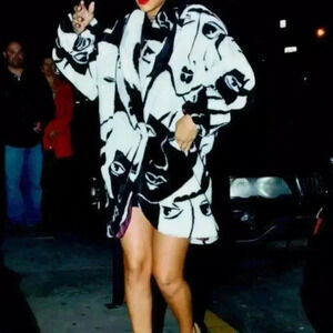 Donny Brook Mob Wife Graphic Faces Faux Fur Coat..