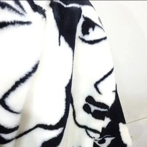 **Vintage Donny BROOKGRAPHIC FACES Faux Fur Coat - Very Good Condition**