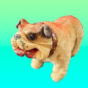 1961 Donny the Smiling Bulldog. Rubber face. Had remote control attachment, but it no longer does. He's still very charming, though. Made by Tomiyama in Japan in 1961.