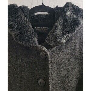 The Donnybrook Longline Wool Blend Hooded Trench Coat in size 8 is a stylish and cozy outerwear option for the winter season. Made from a blend of wool and polyester, this trench coat features a button closure, faux fur trim, and a hood for added warmth. Perfect for various occasions including travel, parties, casual wear, and formal events, this black coat has a solid pattern and long sleeves, making it a versatile and chic addition to any woman's wardrobe. Designed by Donnybrook, this designer piece is sure to make a statement in any city or outdoor setting.