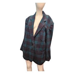 Donnybrook vintage 90's wool blue green check blazer . Womens size 16. Good used condition.