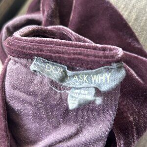 Vintage Don’t Ask Why crushed velvet cropped halter top in a purple tone. Features soft, stretchy velvet fabric with a halter neckline, open back, and body-skimming fit. Made in Italy. One size fits most. Perfect for Y2K clubwear, festival styling, or layering under a denim jacket. Excellent vintage preowned condition with minimal signs of wear.