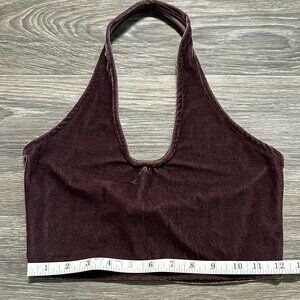 Don’t Ask Why Crushed Velvet Halter Top Crop One Size Purple Made in Italy Y2K