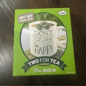“Don’t Hurry Be Happy” tea mug and sloth slow brew diffuser gift set NIB