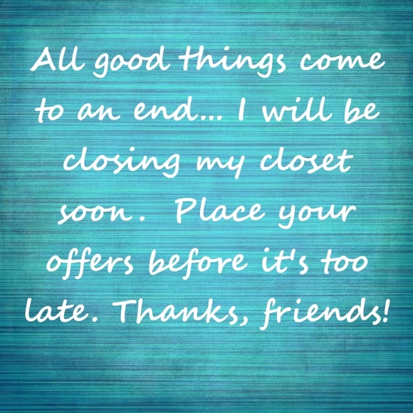 It's been fun, friends, but it's time for me to go! Had your eye on something? Now is the time to place an order or send an offer. I'll be slowly closing down my closet this fall. Thanks for all the support over the years!