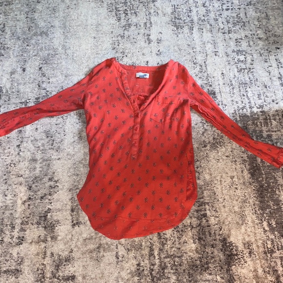 Pink long sleeve blouse with flowers on it